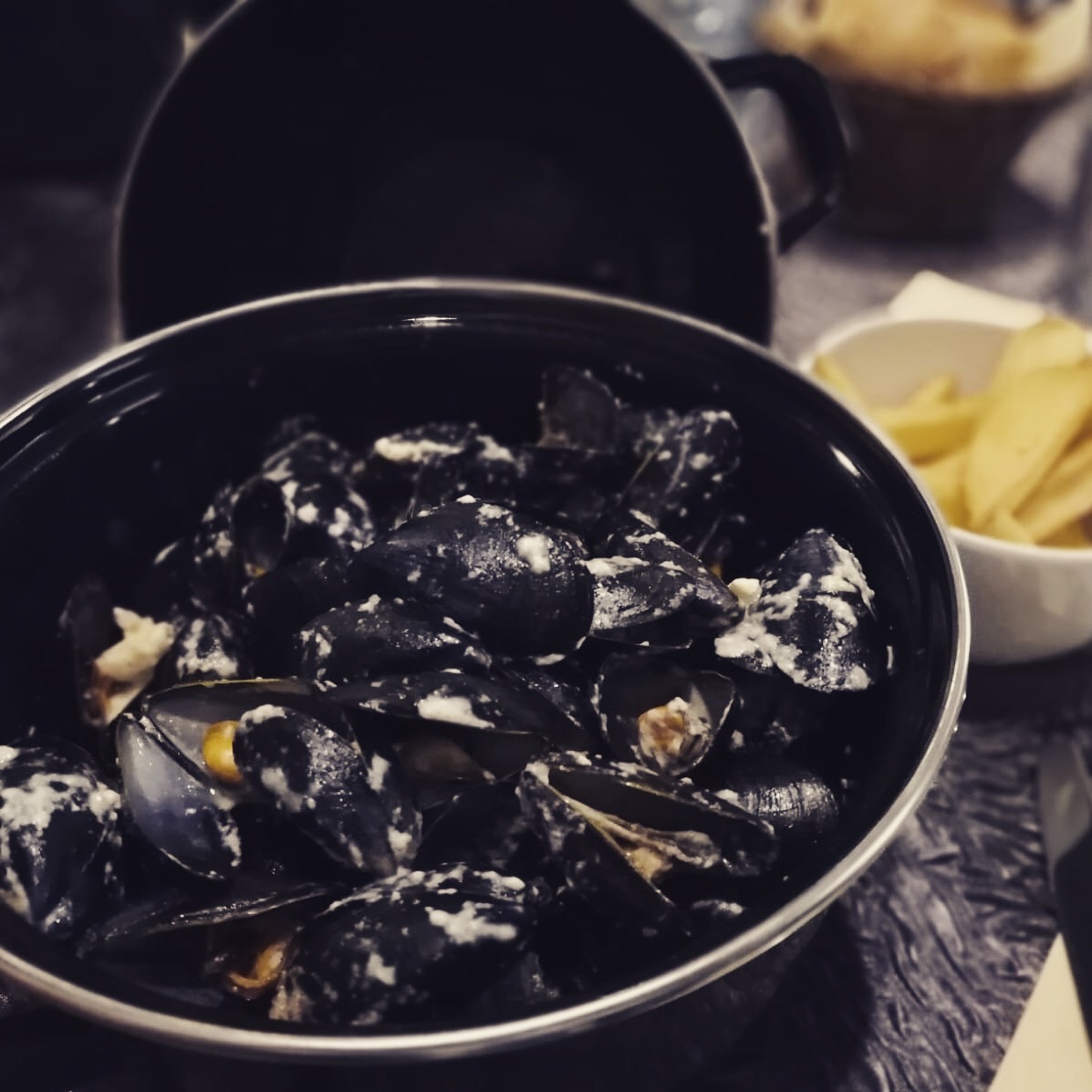 Moules Marinières (mussels in white wine) or Roquefort or Curry or Normandes : 13€
