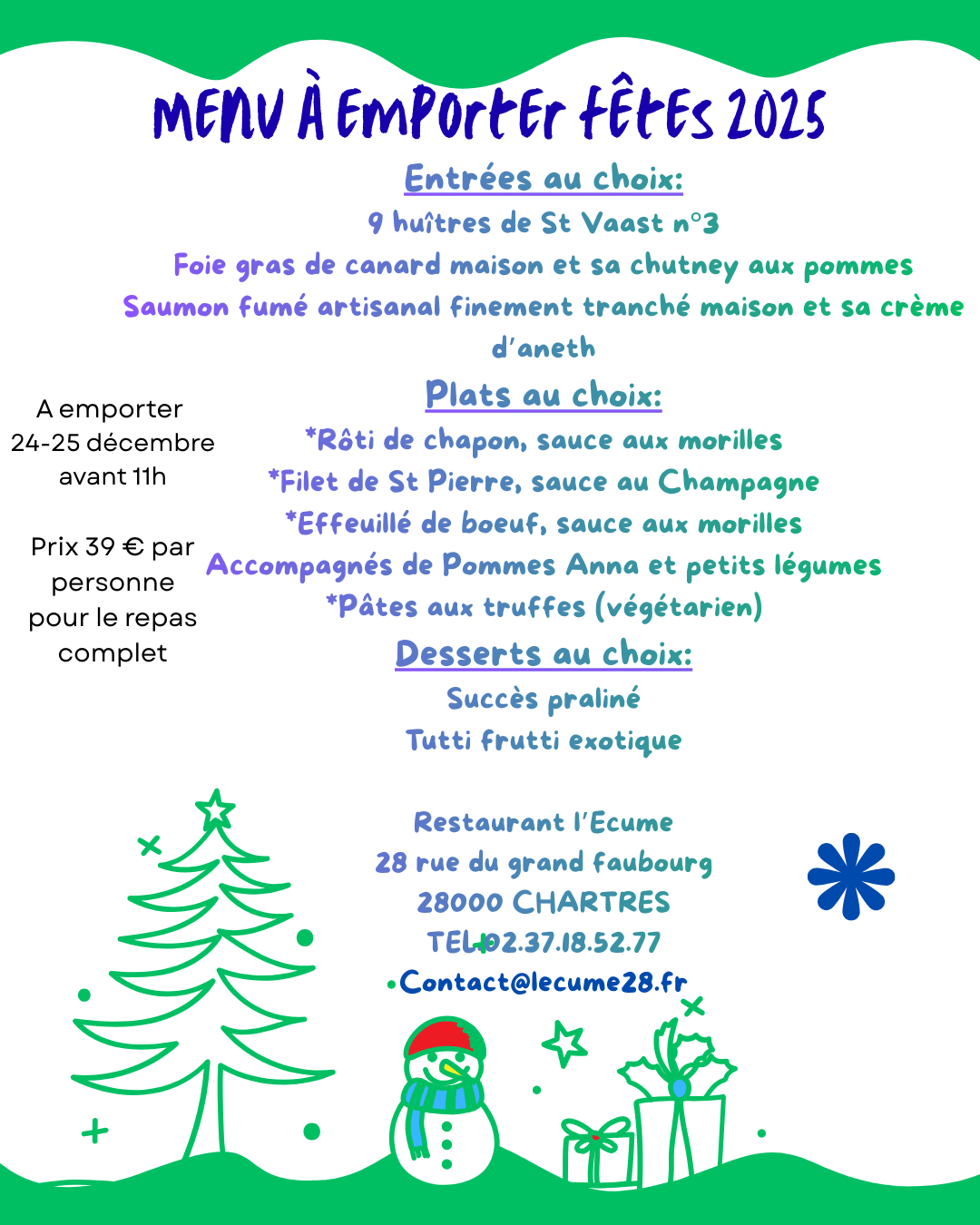 Profitez de nos plats à emporter pour le 24 et le 25 décembre: